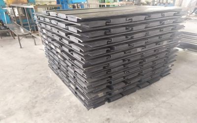 氧化鋁行業(yè)的球磨機(jī)橡膠襯板,因礦漿為堿性溶液,且濃度較高,錳鋼襯板受腐蝕后耐磨度嚴(yán)重下降,且腐蝕后的化學(xué)產(chǎn)物會對產(chǎn)品的純度產(chǎn)生污染,所以大都使用橡膠襯板。由于運行時物料在磨機(jī)筒體內(nèi)要進(jìn)行放熱化學(xué)反應(yīng),致使其溶液溫度高達(dá)100攝氏度,這對普通耐磨配方的橡膠來說是致命的(普通橡膠耐熱在低于80攝氏度以內(nèi)),會極大地加速橡膠襯板的磨損。同時,因為礦漿屬高濃度堿性溶液,就需要增強橡膠襯板的抗腐蝕性。